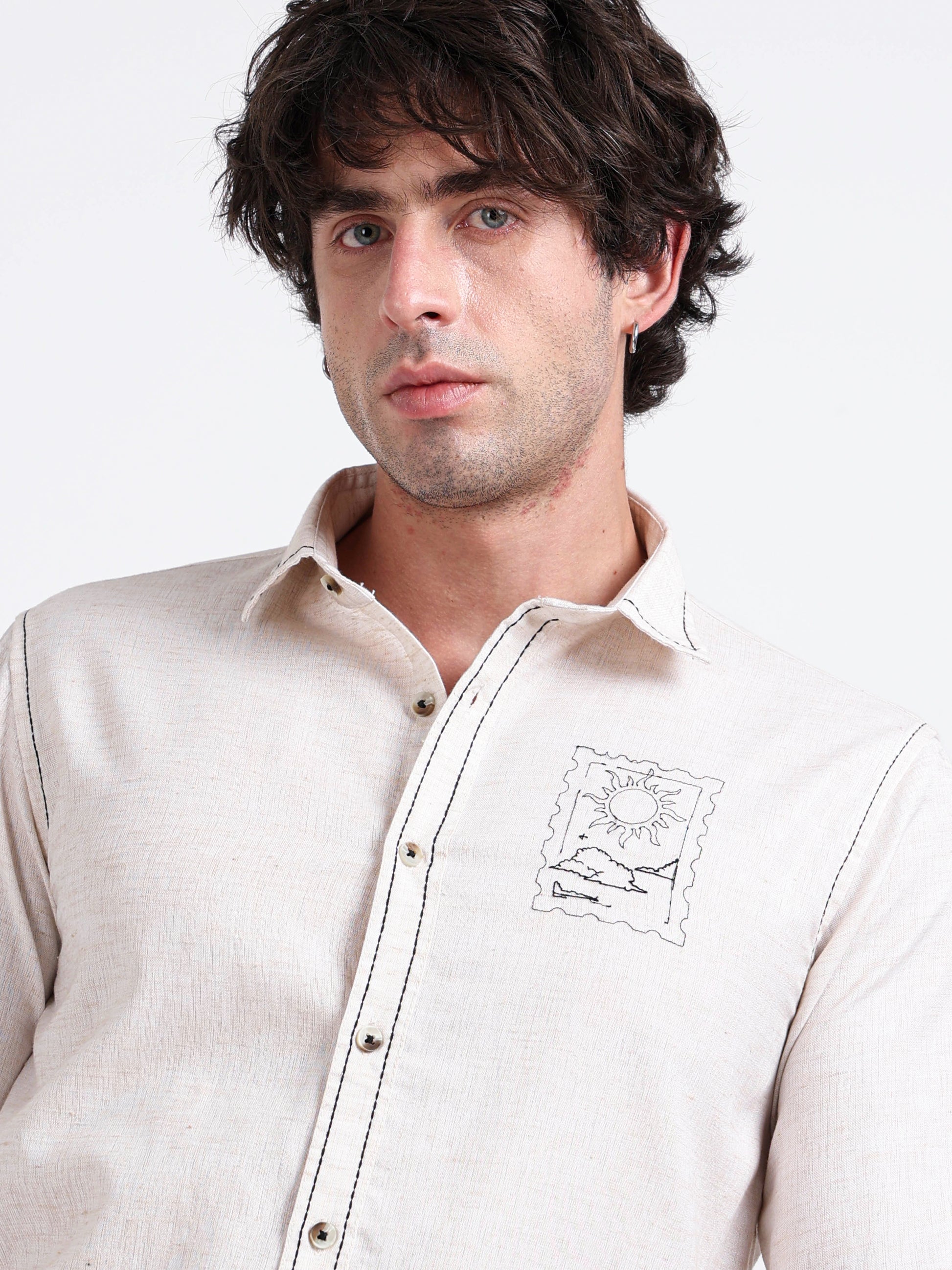 Crafted Embroidery Cotton Blend Shirt