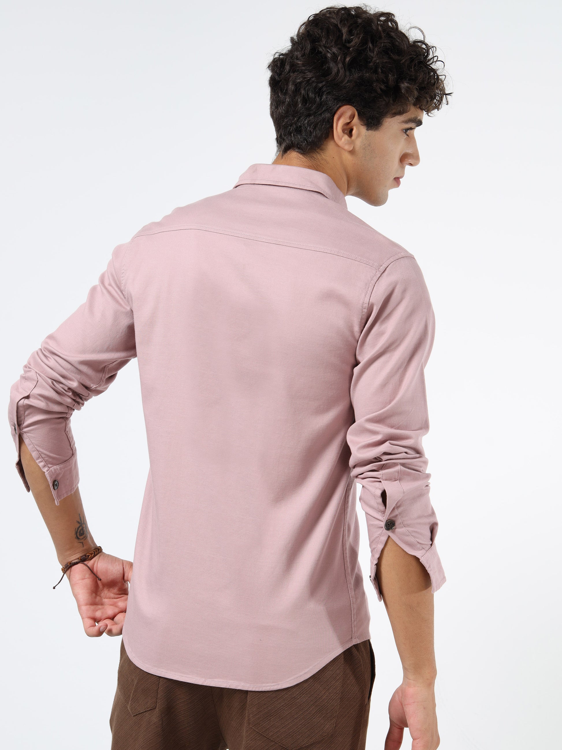 Men’s Light Pink Cotton Utility Casual Shirt with Dual Flap Pockets