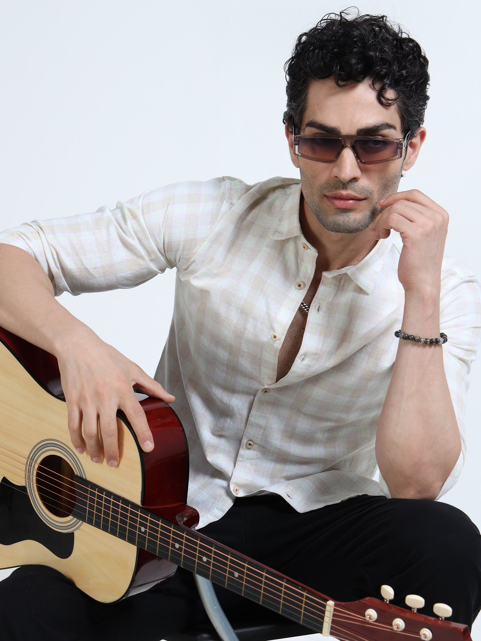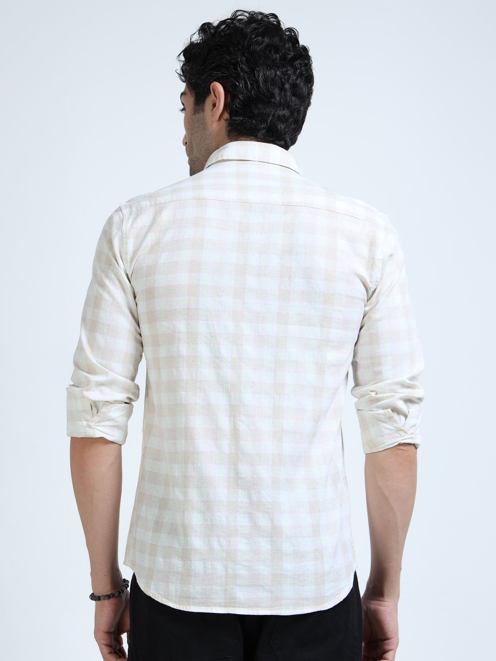 Men’s Cream & Pastel Multi-Check Cotton Linen Shirt