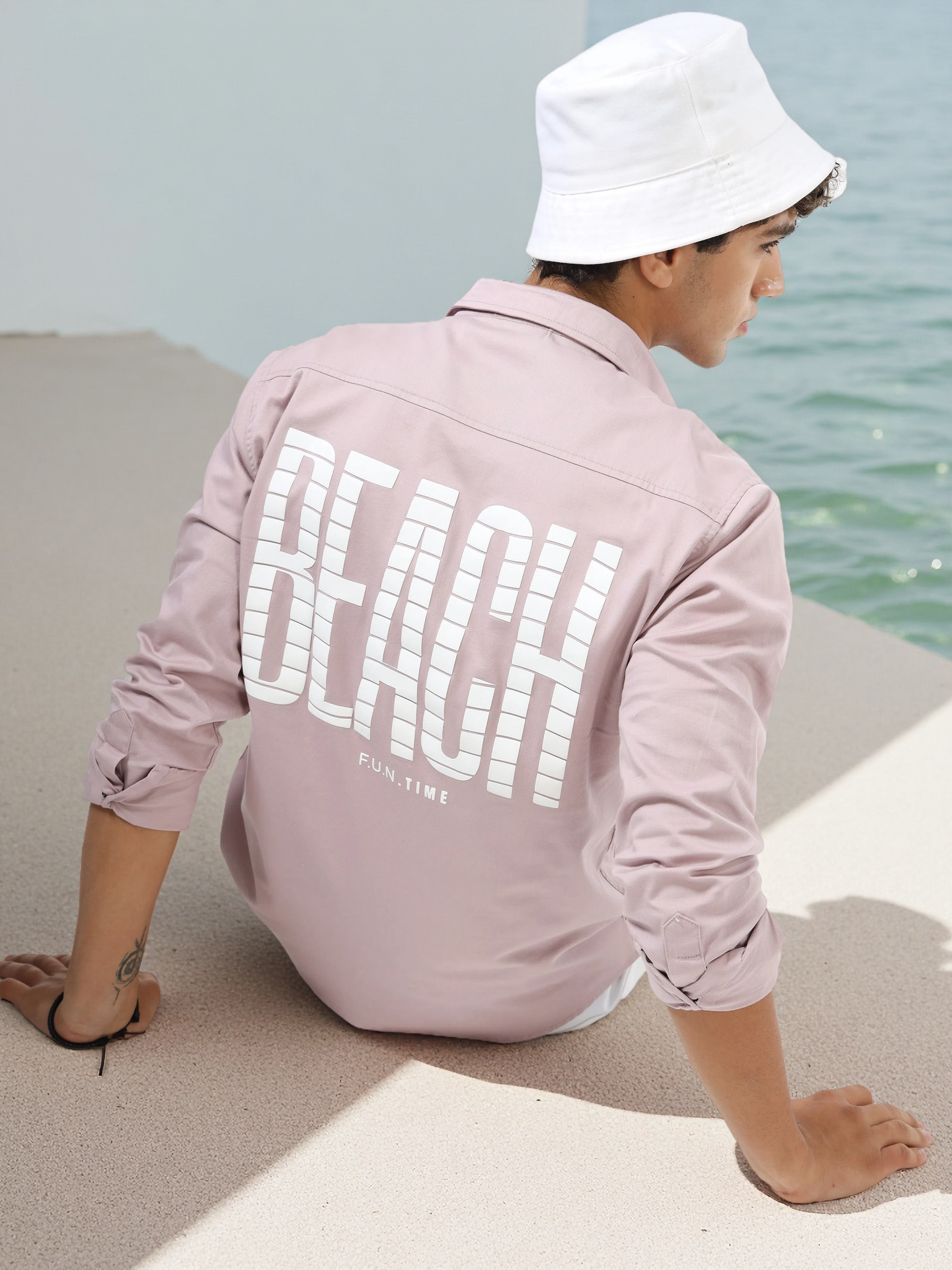 Men’s Light Pink Cotton Casual Shirt with Geometric Print Detailing