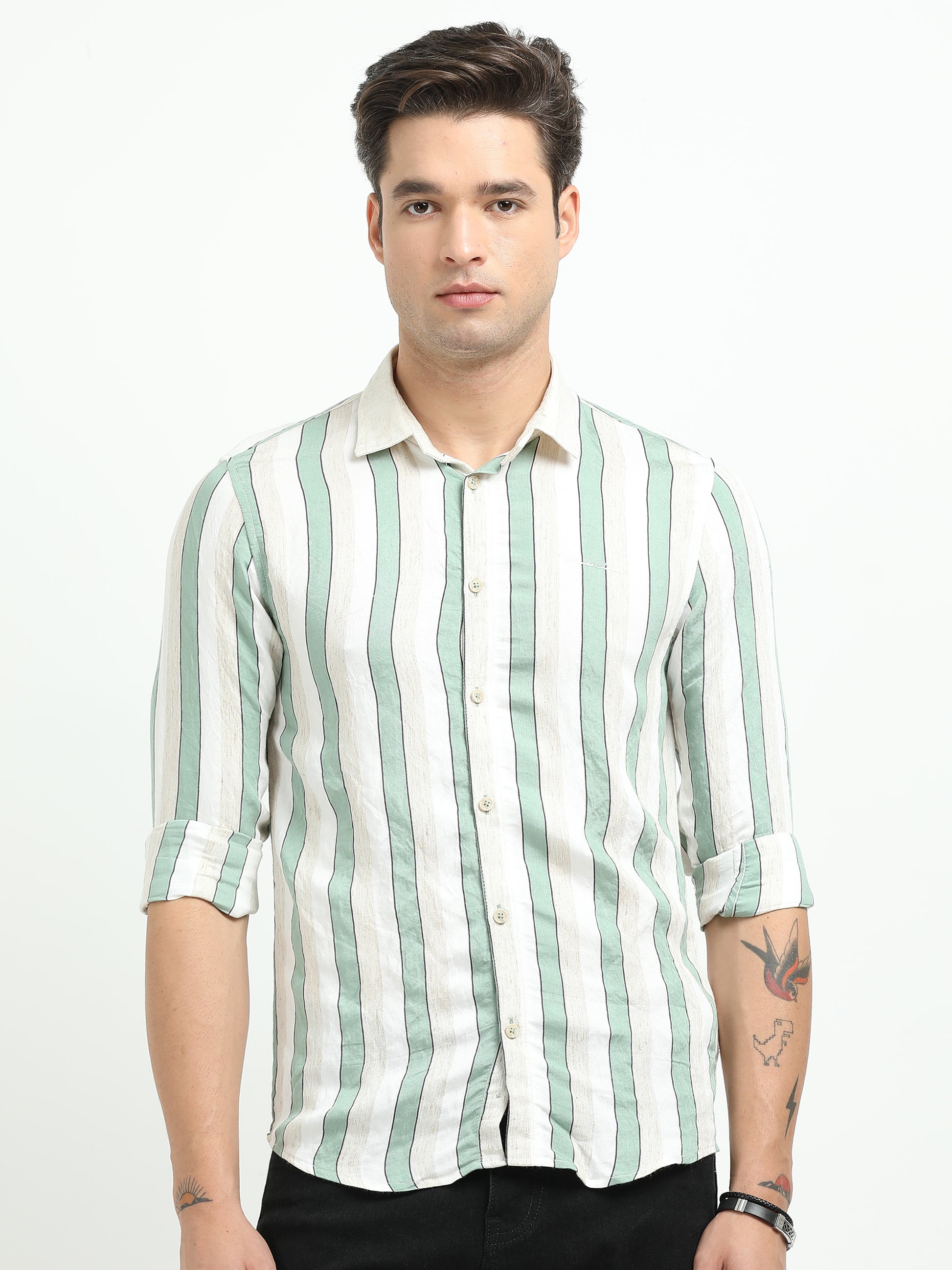 Men’s Mint Green & White Striped Linen Cotton Shirt