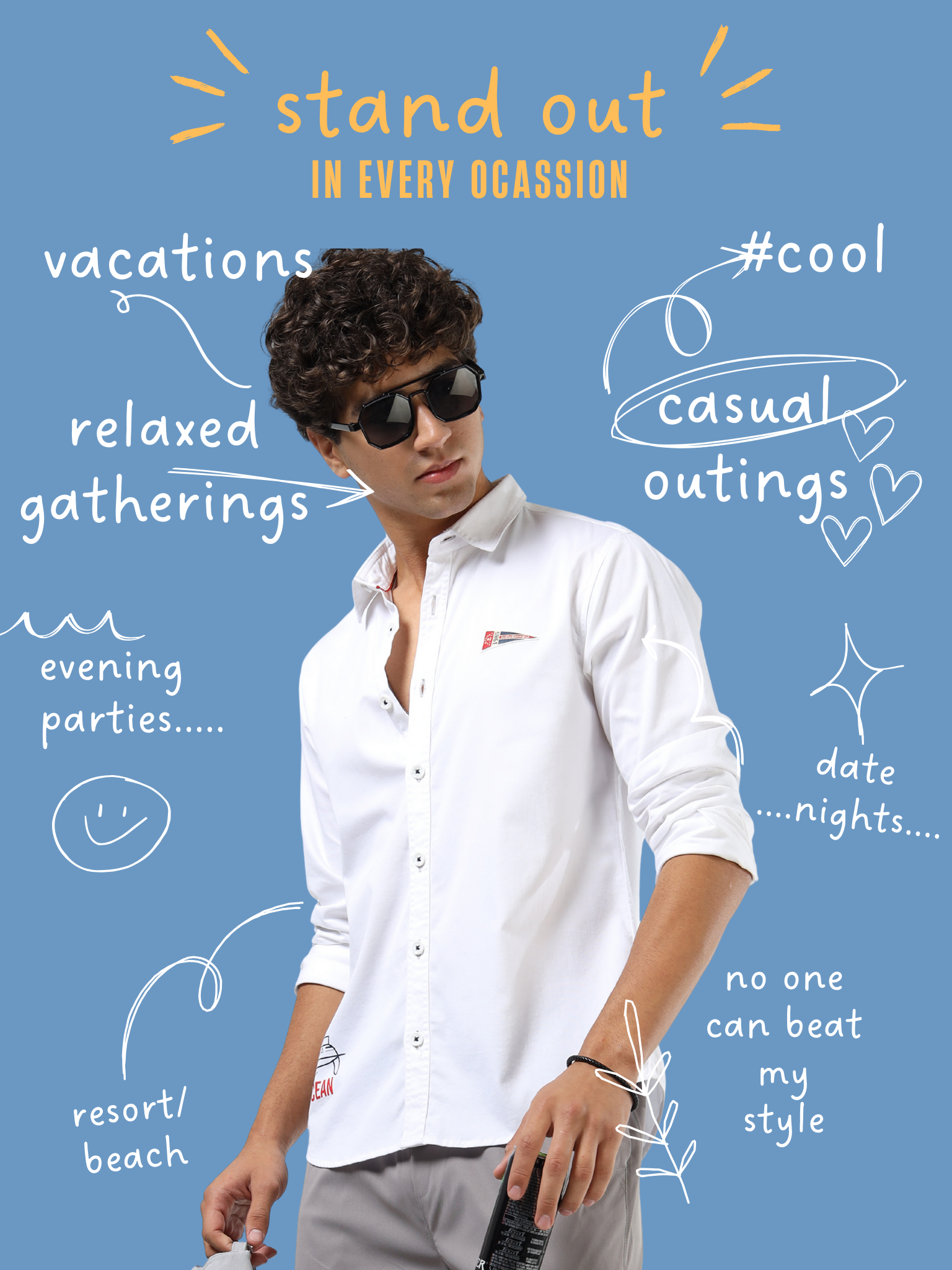 Men’s White Cotton Casual Shirt with Nautical Print Detailing