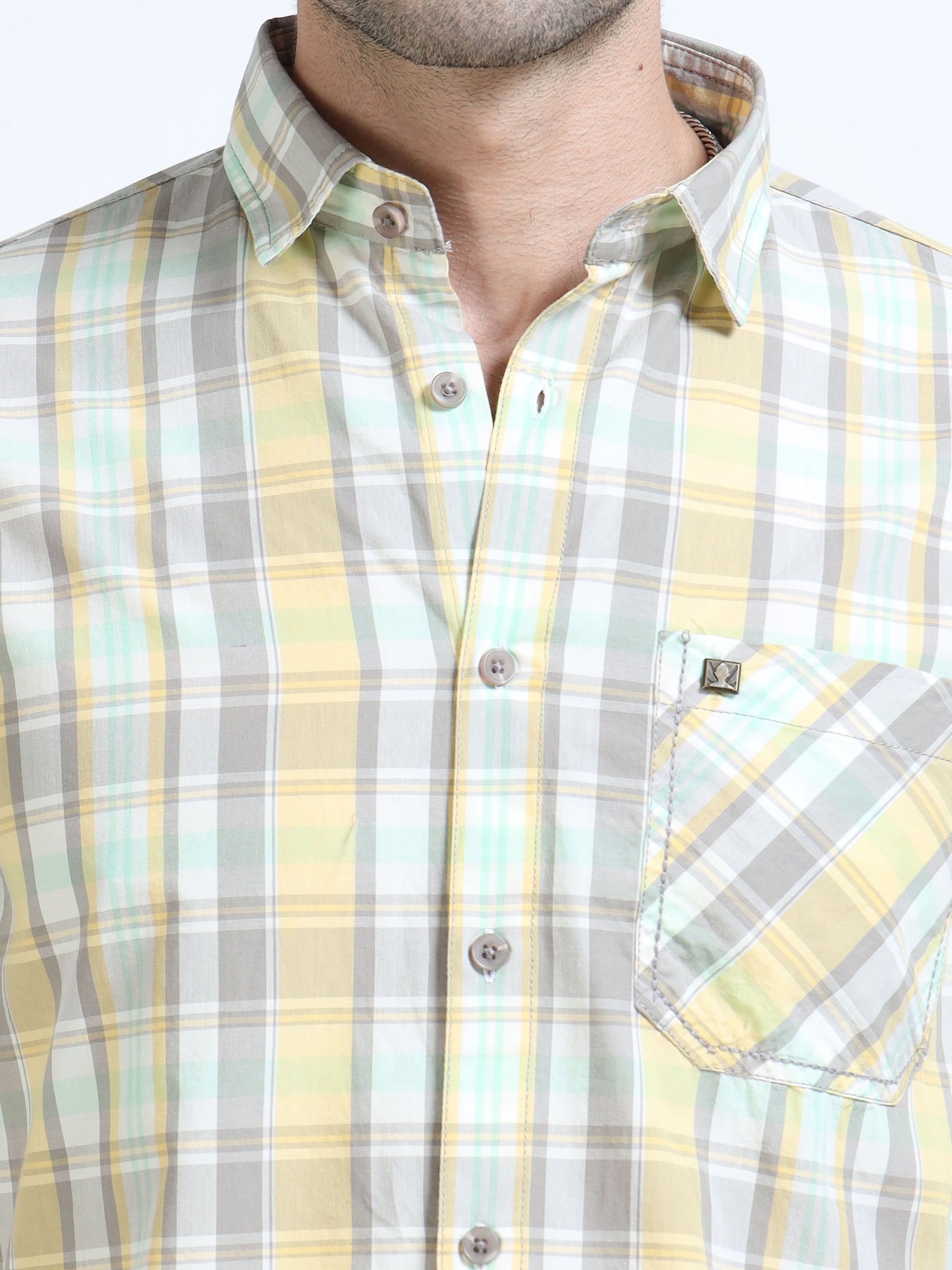 Men’s Yellow & Mint Multi-Check Cotton Linen Shirt